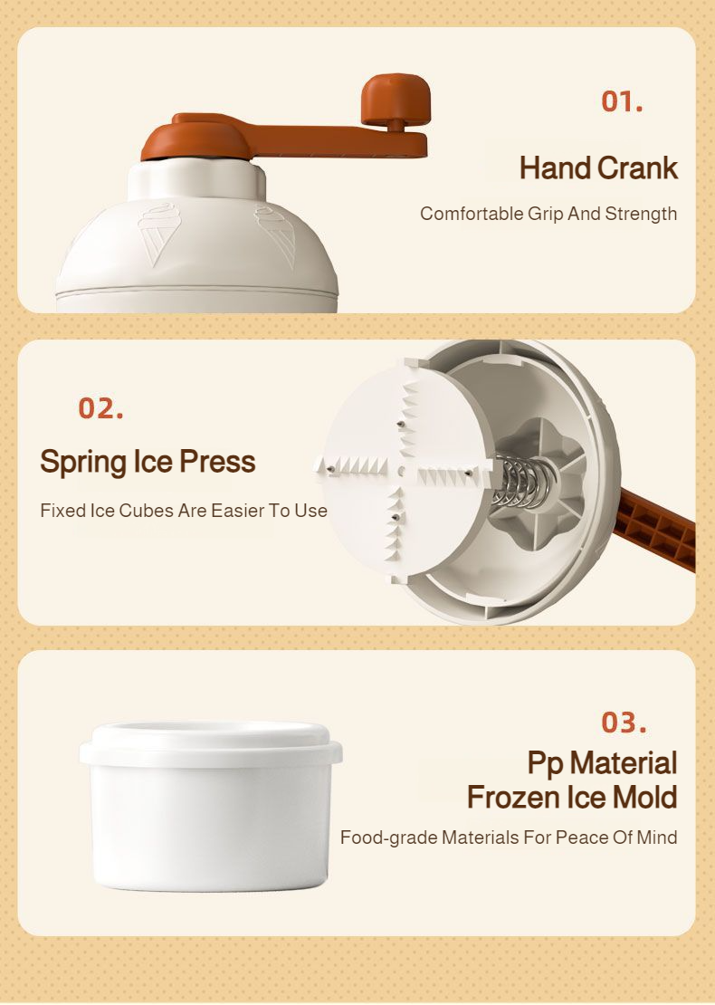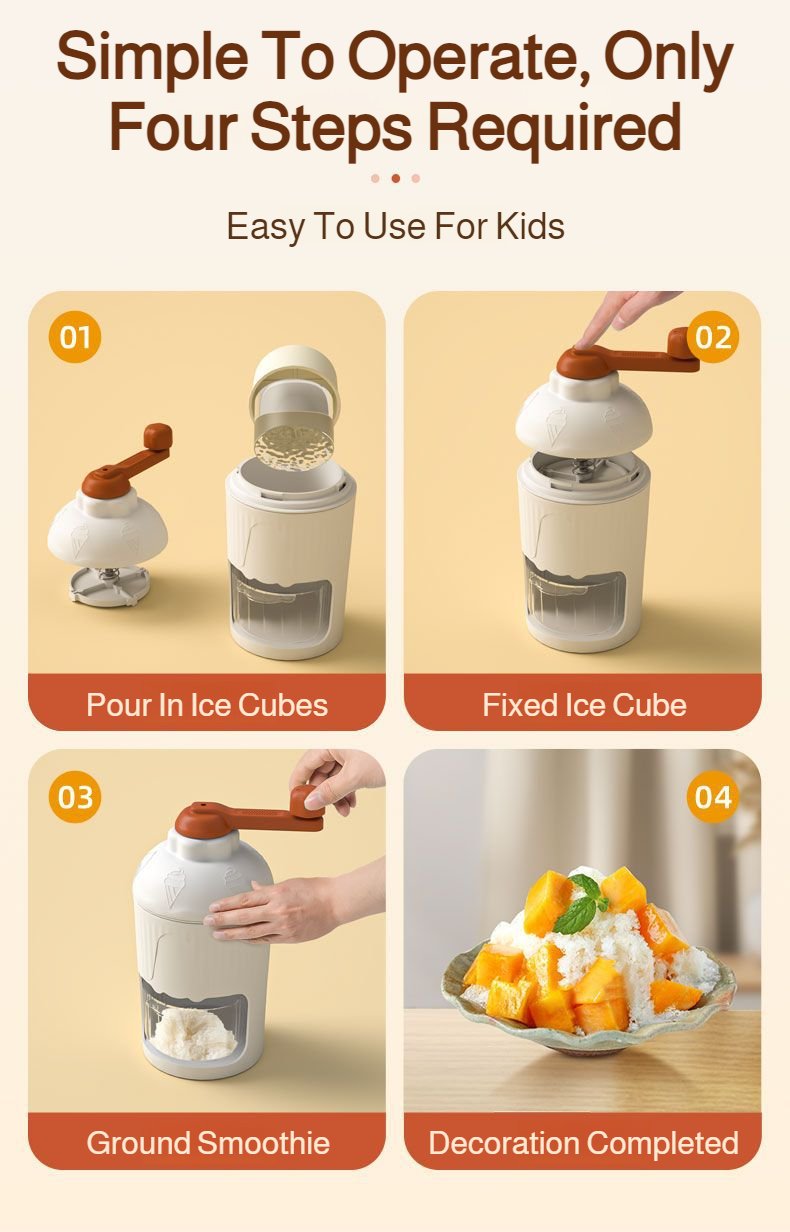 Homeportable fast smoothiemaking handcrank shaved ice machine offers quick ice crushing, compact design, easy manual operation, and is suitable for home use and travel.